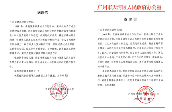 近日,中共廣州市天河區(qū)委辦公室、廣州市天河區(qū)人民政府辦公室向我院發(fā)來感謝信,對我院李鵬副總規(guī)劃師及其帶領(lǐng)的城市設(shè)計與規(guī)劃研究所團(tuán)隊(以下簡稱:城規(guī)所團(tuán)隊)在天河區(qū)多項重點(diǎn)項目的規(guī)劃設(shè)計工作予以高度認(rèn)可,對我院支持天河區(qū)的發(fā)展表示感謝。