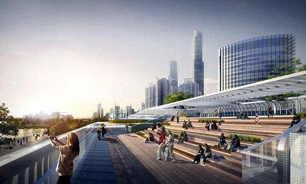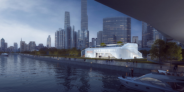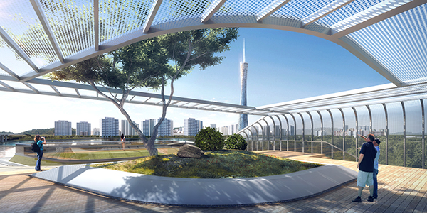 設(shè)計團隊秉承 “提高城市設(shè)計水平,增強公共參與城市建設(shè)新路徑”的設(shè)計理念,在充分考慮社會性景觀訴求因素的前提下,結(jié)合傳統(tǒng)美學(xué),以層層退臺的建筑形式面朝珠江,結(jié)合城市景觀特色形成北高南低的建筑姿態(tài),增強建筑物立體感,使建筑物融入周圍景觀呼應(yīng)珠江景色。