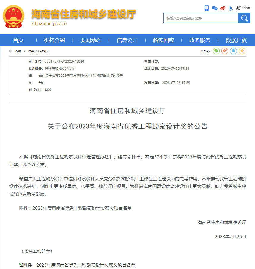 喜訊!省建院三個(gè)項(xiàng)目榮獲2023年度海南省優(yōu)秀工程勘察設(shè)計(jì)獎(jiǎng)